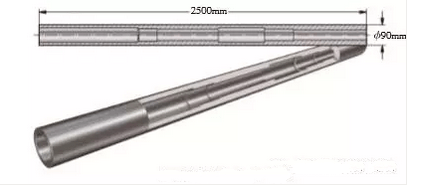 采用深孔加工技术进行高效加 工的一个例子是石油勘探零件的加 工。此类零件约2.5m长,具有一些复 杂的特征,公差要求小。要获得小公 差和优良的表面质量,采用的刀具解 决方案首先要钻削一个直径为90mm 的孔,然后采用浮动铰刀进行精加 工。然后,在 1.5m 的深度,通过扩孔 和铰削得到115 mm 直径的孔。在另 一分隔段部分,大约在中途进入孔, 然后也进行扩孔和铰削,并通过倒角 完成加工。最后,可通过镗削和扩孔 形成两个带倒角的内腔,也可通过磨 削获得最终成品尺寸。