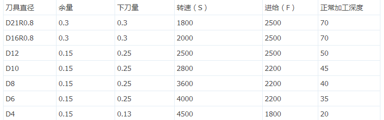 加硬钢料直接开粗时的参数