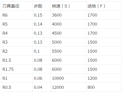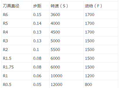 加硬钢料光刀时球刀的参数