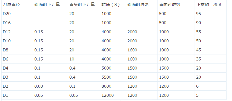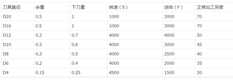 加工中心能对各种材质工件加工,不同的材质的工件耐压耐热程度是不同的。因此在编程时要根据不同材质设置刀具参数、转速与进给、下刀量。下面小编整理了各种材料在编程时的参数设置。