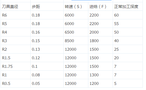 普通钢料光刀时球刀的参数