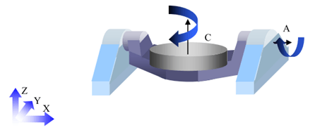 根据前文,我们都知道是由于旋转坐标的变化导致了直线轴坐标的偏移。那么分析旋转轴的旋转中心就显得尤为重要。对于双转台结构机床,C轴也就是第5轴的控制点通常在机床工作台面的回转中心。而第4轴通常
