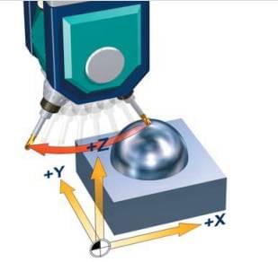 如上图,带RTCP功能开的情况下,控制系统只改变刀具方向,刀尖位置仍保持不变。X,Y,Z轴上必要的补偿运动已被自动计算进去。