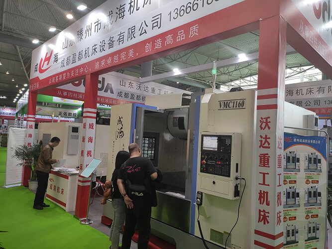 本次展会地址10月11日至10月13日共持续三天,我司成海机床主要展示了本年度的热卖机型VMC850和vmc1160立式加工中心。此两款机型标配KND2000和三菱M80数控系统,BT40台湾主轴、24把圆盘刀库及三轴线轨。可以满足市面上所有主流模具、工具的加工行程要求,同时可以根据客户的具体要求设置分度头实现多轴联动加工。